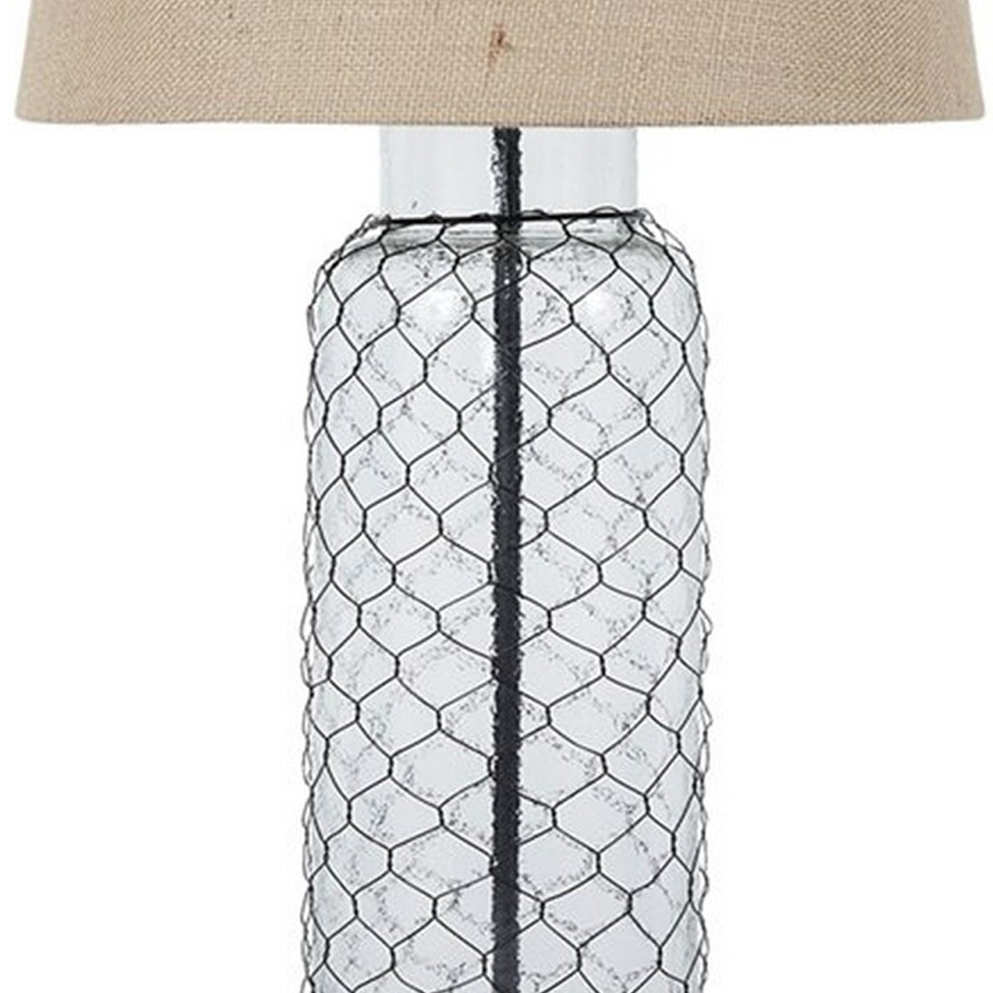Woven Wire Wrapped Glass Base Table Lamp with Fabric Shade Beige
